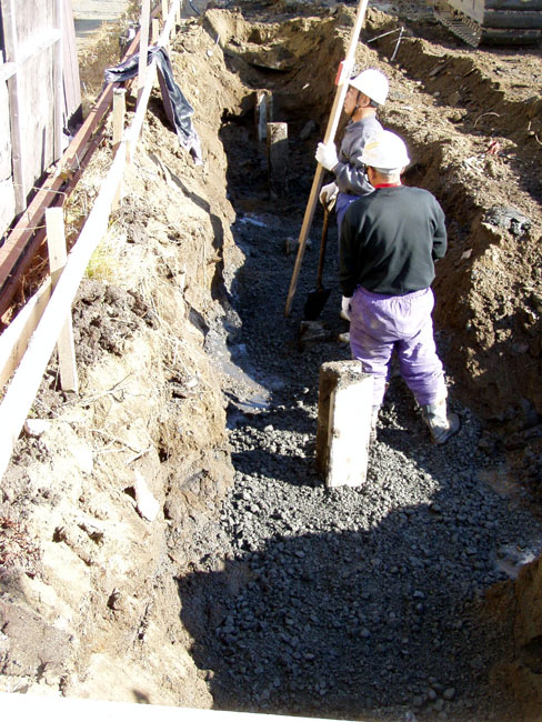 また、この辺の地域は水位が高いのか根掘りの際、水が沸くと聞いていましたが、やはりGL下1m程のところからジワジワと水が出てきました。